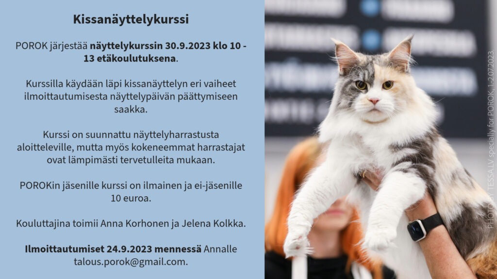 Kissanäyttelykurssi 30.9.2023, etäkoulutuksena